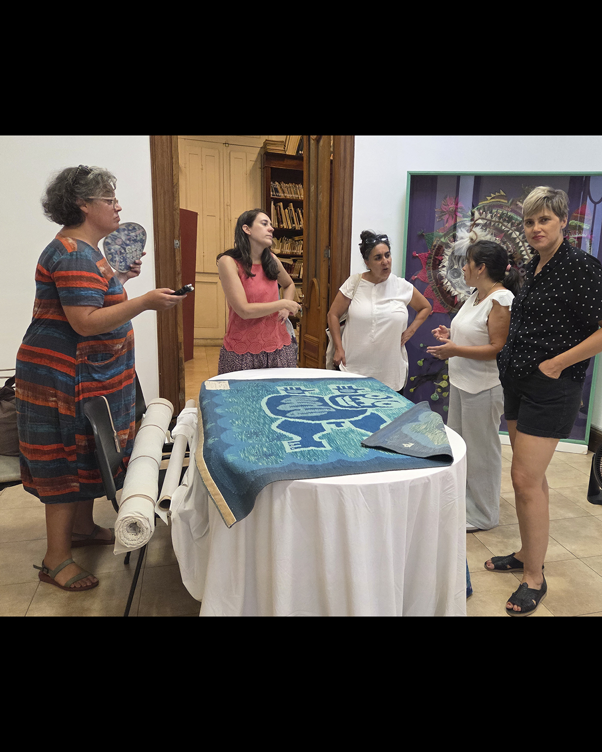 El equipo se reunió con directores de cultura de Tafí del Valle y San Carlos, y con referentes culturales de las localidades visitadas.Se visitaron talleres de artesanas textiles, se entrevistó a participantes de diversas cooperativas textiles, entre ellas la Cooperativa Randeras de El Cercado y la Cooperativa Ruta del Tejido en Tafí del Valle, Tucumán. Se relevaron fondos documentales y obras de arte de artistas salteñxs claves del siglo XX -Carlos Luis García Bes, Elsa Salfity y María Martorell- y materiales de la biblioteca de la Escuela de Educación Técnica n° 3101 Dr. Joaquín Castellanos, Tucumán, y de la Escuela Provincial de Bellas Artes Tomás Cabrera, Salta. La misión concluyó con un conversatorio en el Mercado de Artesanías de esa ciudad, con su responsable, Mario Luna, y artesanas textiles de San Antonio de los Cobres.